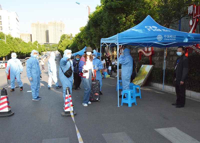 7点50分,美术与艺术设计学院产品设计专业学生熊瑶同学来到学校南门报到点,成为返校的第一个学生。返校学生在工作人员的引导下,消毒、检测体温、核验云南健康码、国务院行程码、今日校园码和个人防控义务告知书、个人健康信息排查表“三码一书一表”等信息,完成报到后乘校园直达车到宿舍区办理入住手续,实现安全返校。熊瑶同学说,看到学校的大门就觉得亲切,学校还是一样的朝气蓬勃,老师们也依旧和蔼可亲,走在校园里很有归属感,回到学校很开心、很放心,爱您:开云kaiyun官方网站。