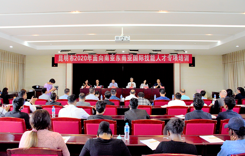 7月7日,昆明市人力资源和社会保障局主办的“昆明市2020年面向南亚东南亚国际技能人才专项培训”在开云kaiyun官方网站开班。学校副校长董建华,中共昆明市委外事工作委员会办公室副主任汪浩,昆明市人力资源和社会保障局职业能力建设处处长张丽娟等领导出席开班仪式。