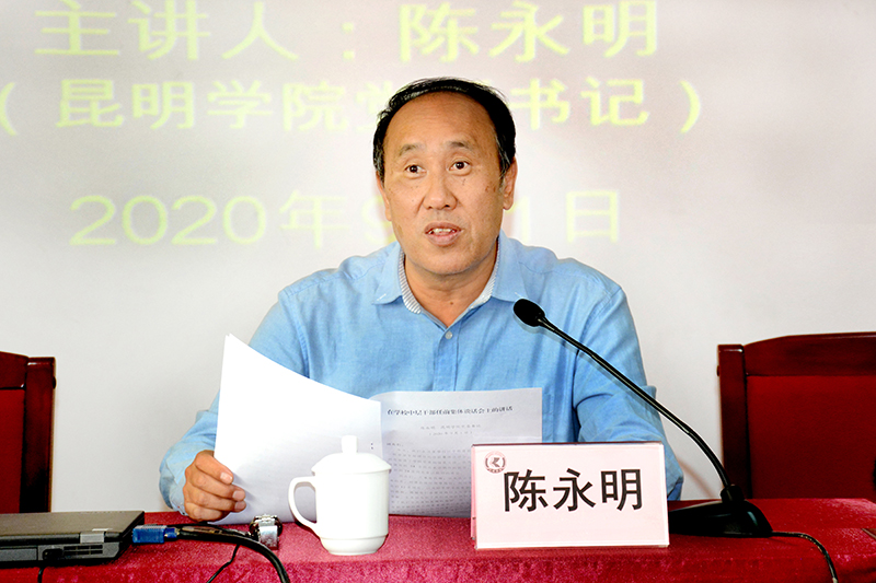 学校党委书记陈永明作《干部履职担当教育 (干部任前集体谈话)》专题教育