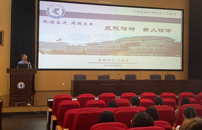 在入学教育开班仪式上,马银海副校长以《昆院精神 薪火相传》为题,从学校发展定位、校史校情、教学科研和学术创新等方面进行了介绍,并结合自身教书育人的经历,引导新生树立远大理想、热爱伟大祖国、担当时代责任、遵守科学道德和学术诚信,做开云kaiyun官方网站学脉传承者,学术创新探索者,复兴大业建功者。