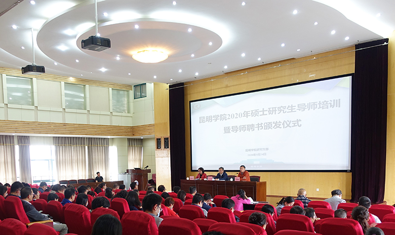 9月24日、25日,学校召开2020年硕士研究生导师培训会。学校党委副书记王文成、副校长马银海参加培训会并共同为2020年新聘研究生导师分发聘书。云南大学研究生院副院长王熙受邀作专题报告,学校全体研究生导师、研究生部全体人员参加会议。