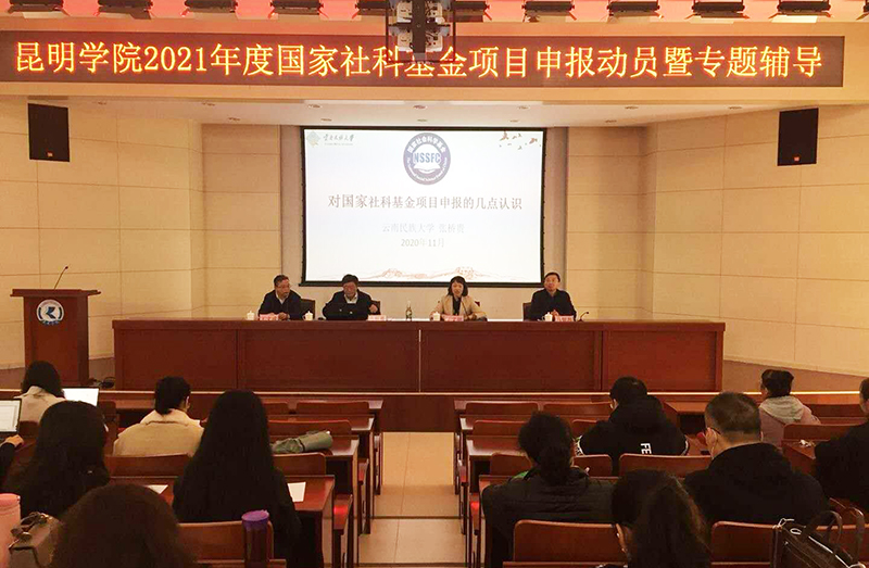 11月6日,云南民族大学校长张桥贵教授应邀到开云官网,作国家社科基金项目申报辅导。会议由丁文丽校长主持,王文成副书记、马银海副校长出席会议,学校11家文科单位相关负责人、科研秘书、博士及副高职称以上教师100余人参加。