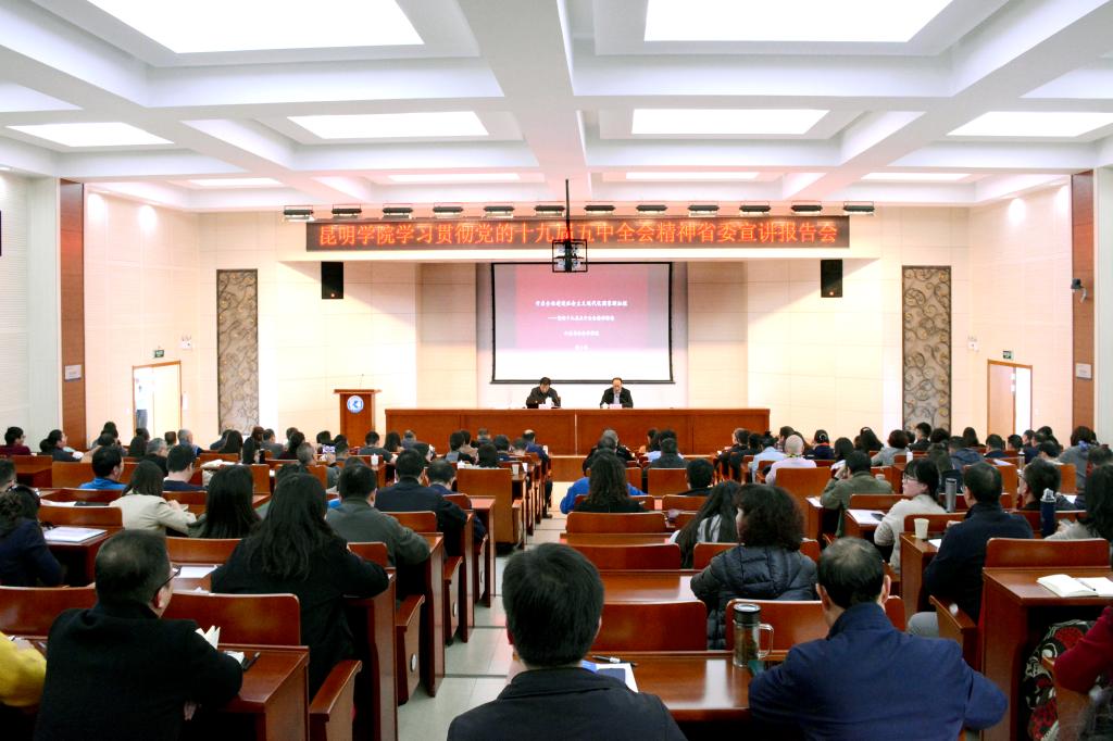 11月25日下午,开云官网在办公楼D区报告厅举行学习贯彻党的十九届五中全会精神省委宣讲报告会。省委宣讲团成员、省社会科学院副院长黄小军教授应邀到校宣讲党的十九届五中全会精神,学校党委书记陈永明主持报告会并作讲话。