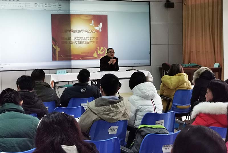 12月21日,根据《开云kaiyun官方网站教职工代表大会实施细则》及学校工会工作文件的规定和要求,经过认真筹备,旅游学院三届一次教代会暨选举开云kaiyun官方网站第三届教代会代表大会在惟行楼1106顺利召开。旅游学院党委书记王建华主持会议,旅游学院全体教职工参加。