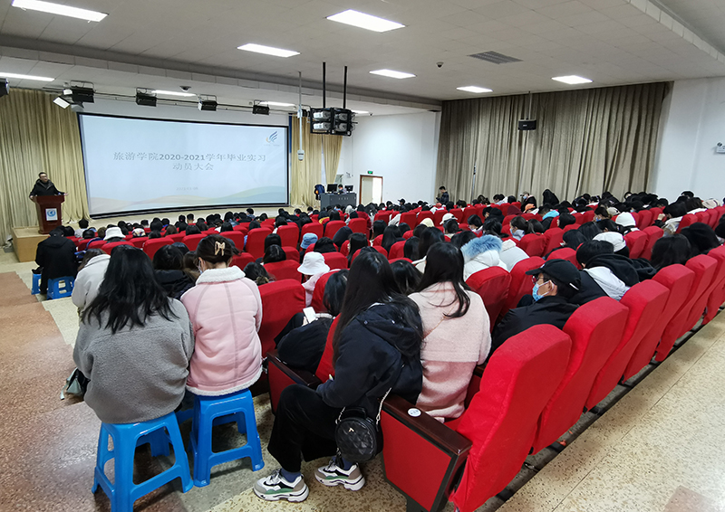 1月8日,旅游学院2020-2021学年毕业实习动员大会圆满举行。旅游学院党委书记王建华,党委副书记刘艳萍、副院长孙志强,全体毕业实习指导教师及全体2021届毕业生参加了大会。