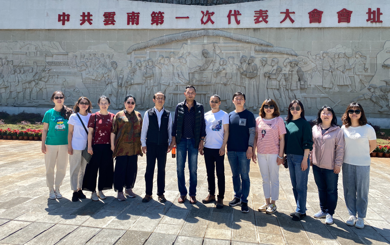 4月20-21日,图书馆馆长孙晓坤、副馆长张志红率党总委委员、支委委员、部主任一行12人到中共云南第一次代表大会会址(红河州蒙自市查尼皮村)参观,在红河学院图书馆进行交流学习。