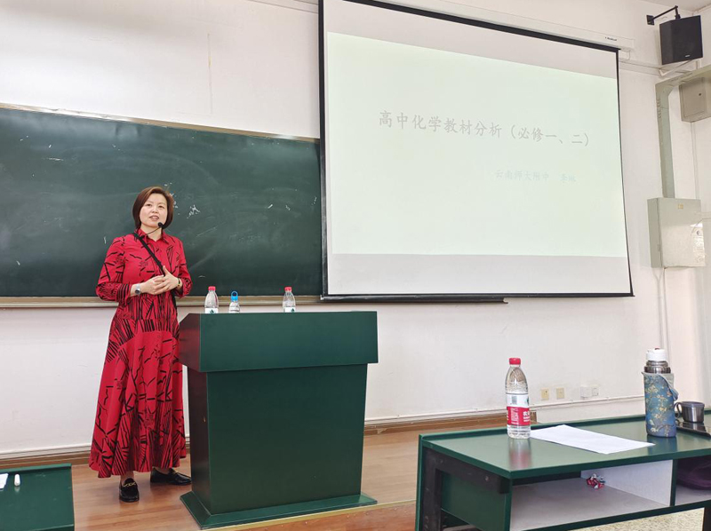 4月23日,化学化工学院邀请云南师范大学附属中学高级教师张喜燕、李琳到校,在博识楼2104教室为化学化工学院开展中学化学教师职业技能训练专题讲座。此次讲座由学院副院长李维莉主持,2018级化学(教师教育方向)、2020级化学专升本以及学院其他学生到场聆听。