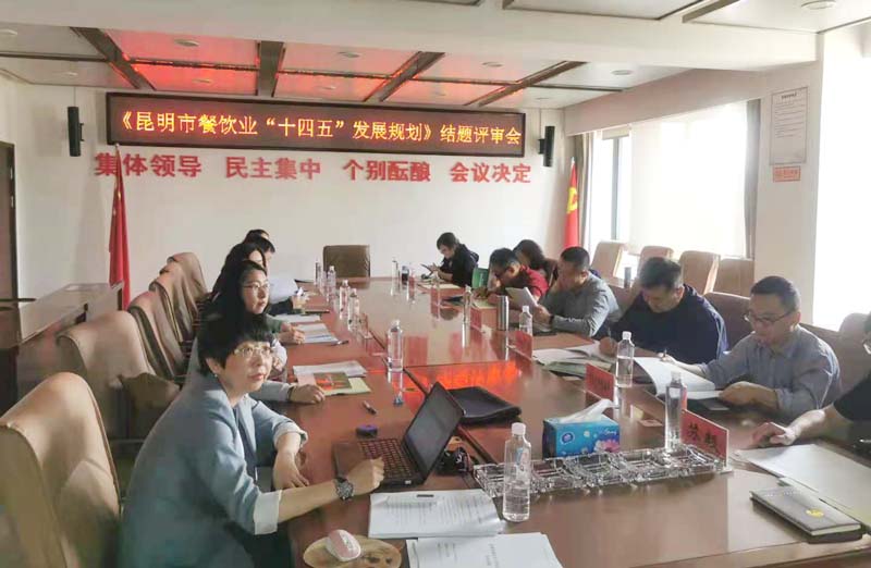 4月29日,旅游学院主持项目《昆明市餐饮业“十四五”发展规划》结题评审会在昆明市商务局 503会议室召开。该项目是旅游学院2020年10月通过政府统一招投标方式获得,旅游学院院长田芙蓉教授担任项目组长。