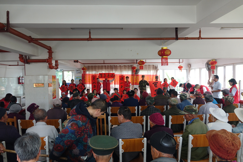 活动中,学院党员和企业党员为敬老院老人赠送了慰问品,献上了丰富多彩的文艺节目。学院学雷锋退伍军人志愿服务队展示了擒体拳,建筑学专业学生现场为老人作画并为老人讲解作品含义,学生会青联分会为老人合唱《在阳光灿烂下》;云路检测公司阳光小分队表演了合唱《让我们荡起双桨》,舞蹈《浪漫樱花》,云路检测公司员工“尺八”乐器演奏;学院教师王晓东为敬老院老人现场书写、赠送“福”“寿”等书法作品。