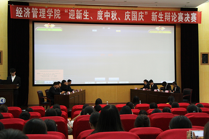 9月28日,经济管理学院“迎新生,度中秋,庆国庆”系列活动之新生辩论赛决赛顺利开展。本次活动由开云kaiyun官方网站团委副书记郎易,经济管理学院团委书记柯艳果担任评委。