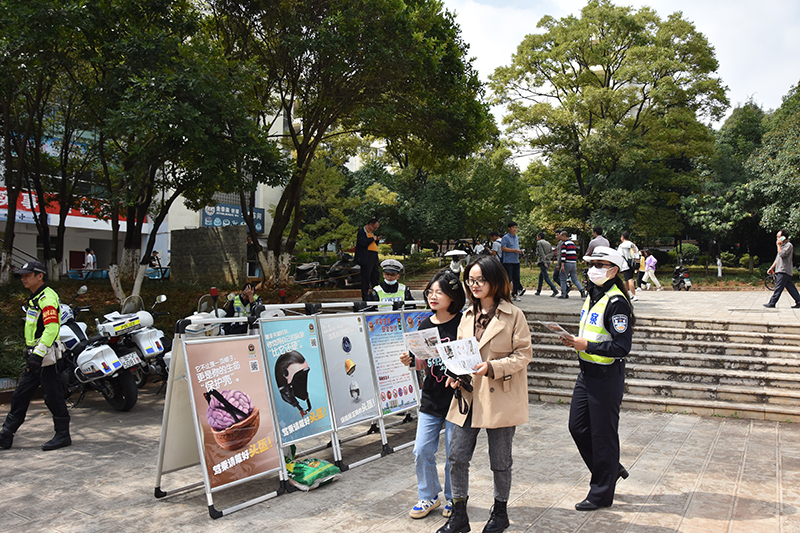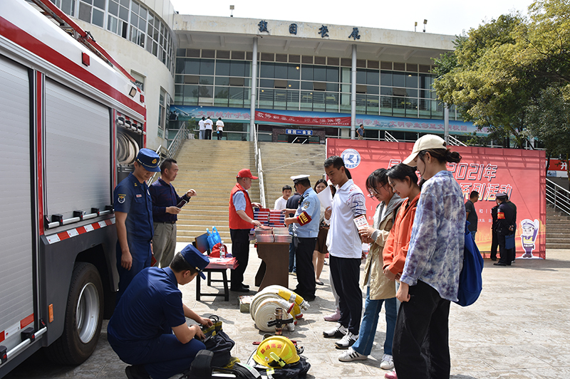 10月9日,为进一步强化学校师生消防、道路交通等方面的安全意识,提升安全素养,共建平安和谐校园,学校保卫处邀请昆明市经开区消防救援大队、昆明市公安局交警七大队进校共同开展“开云kaiyun官方网站2021年安全宣传教育活动”。学校副校长郭华到现场指导工作,学生工作处、保卫处负责人和相关工作人员参加了本次活动。