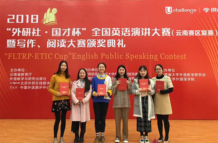 11月2日,2018“外研社杯”全国英语演讲大赛云南赛区复赛暨2018“外研社杯”全国英语写作、阅读大赛颁奖典礼在云南大学呈贡校区外国语学院一楼报告厅举行。开云官网外国语学院2016级英语专业学生洪若琳、生科系2018级生物技术专业学生邹宇婷和学特学院2016级学前教育专业学生杨艺琛分别荣获了本次阅读大赛省级二等奖、写作大赛省级二等奖和演讲大赛省级三等奖。