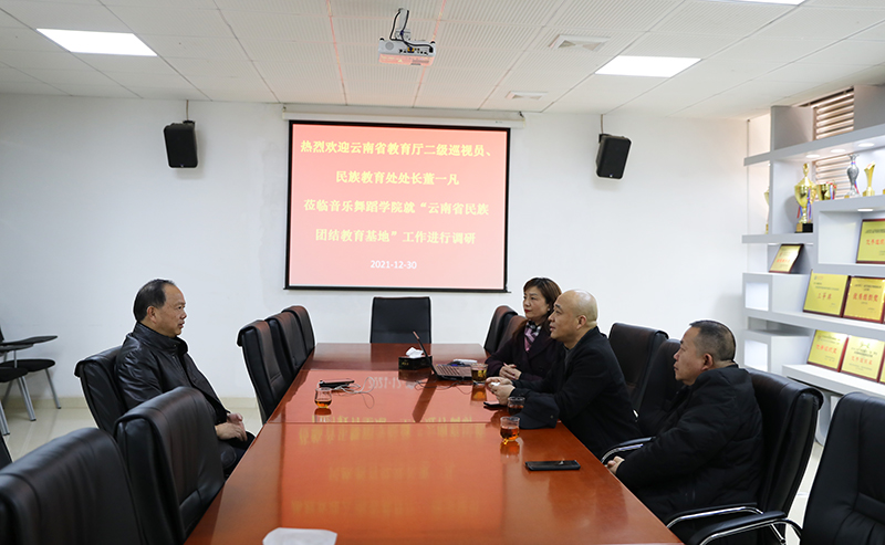 12月30日,云南省教育厅二级巡视员、民族教育处董一凡处长莅临音乐舞蹈学院,对云南省民族团结教育基地的发展工作进行调研指导。学院黄清林院长、叶伟翔副书记、田应娟副院长及教师代表参加了本次调研工作。