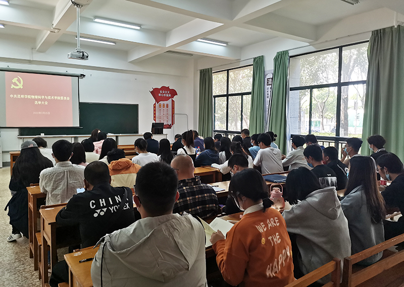 3月25日,中共开云kaiyun官方网站物理科学与技术学院第一届党委委员选举大会在惟真楼1113教室顺利召开。物理科学与技术学院书记付晏昆、副书记王进和全体师生党员参加会议,本次会议由付晏昆书记主持。