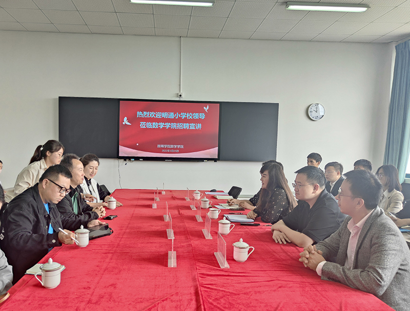 5月26日,昆明明通小学刘毅校长携团队到数学学院开展招聘宣讲,拓宽就业渠道,提升就业质量,数学学院党政班子、负责就业工作的辅导员和40名2022届毕业生参加招聘宣讲会。