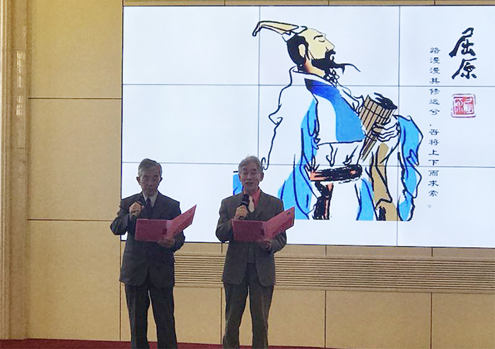 开云官网退休教师曾汝弟提交的古体诗楚辞《改革开放,梦想必由路》、律诗《文明古国在复兴》分别获得二等奖和三等奖。李绍陶、徐有光老师提交的古体诗获得了鼓励奖。曾汝弟老师的《改革开放,梦想必由路》还被选到颁奖大会上朗诵。为了提高朗诵效果,曾老师认真制作了带有背景画面和音乐的ppt,还特别邀请83岁的退休教师刘人本合作朗诵。由于他们事前进行了认真排练,朗诵取得了非常好的效果,赢得了全场热烈掌声。