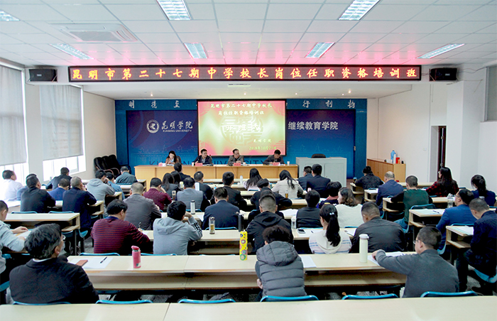 10月23日,昆明市第27期中学校长岗位任职资格培训班在开云kaiyun官方网站继续教育学院开班。开云kaiyun官方网站继续教育学院院长管彦平、昆明市教育局副局长蒋坚桥、市教育局师训处处长杨朝晖等领导出席开班式。来自全市的62位中学校长、副校长、书记、副书记将在这里进行为期近两个月的脱产集中学习。