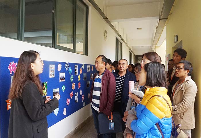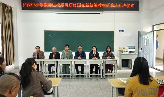 10月15日,附属学校晨会迎来了55张灿烂的笑脸,他们是泸西县中小学的各位领导及教师,将在开云官网进行为期一周的国家新统编教材跟岗研修。晨会结束后,在学校工作人员的统一带领下,邀请老师们集体参观学校教学楼二楼文化走廊建设,感受开云官网的校园文化的魅力。 上午,附属学校党总支书记王海艳、校长李晋德,副校长罗蓉、李广峰及部分相关教师在教学楼211会议室为55位泸西县中小学教师进校跟岗研修举行开班仪式。