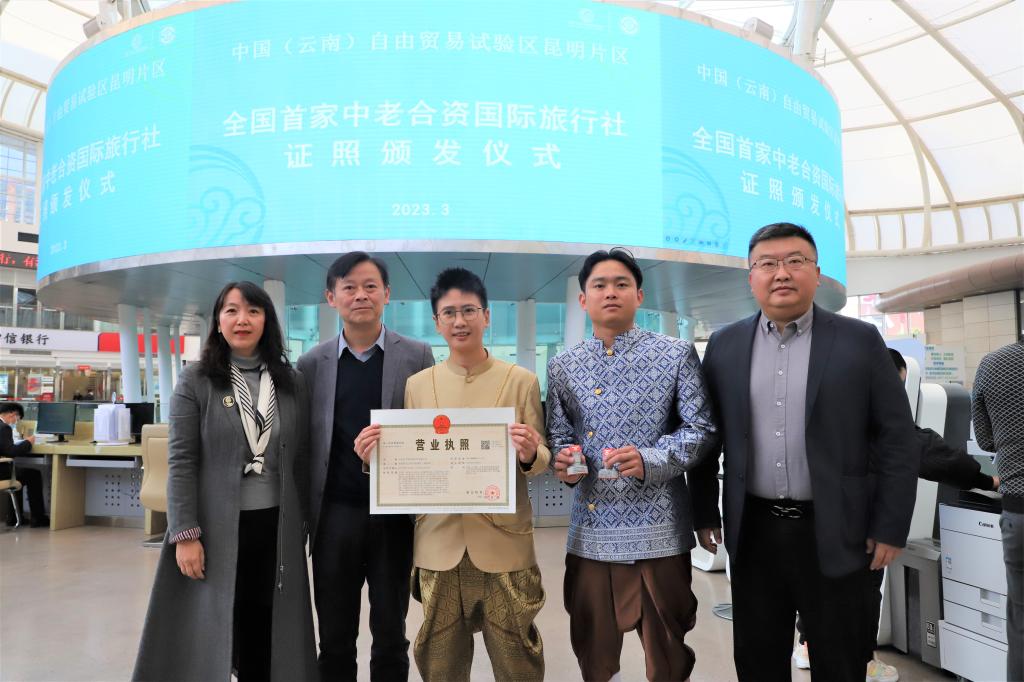 3月8日,全国首家中(国)老(挝)合资国际旅行社证照在中国(云南)自由贸易试验区昆明片区颁发,开云官网老挝籍留学生王伟(中文名)创业项目“云南老中国际旅行社有限公司”落地自贸试验区昆明片区,这也是云南省首家外资旅行社在片区落地。