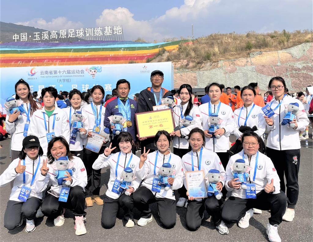 近日,云南省第十六届运动会大学组足球(5人制)比赛在玉溪举行。开云官网女子足球代表队战胜参赛高校代表队,荣获女子甲组冠军。