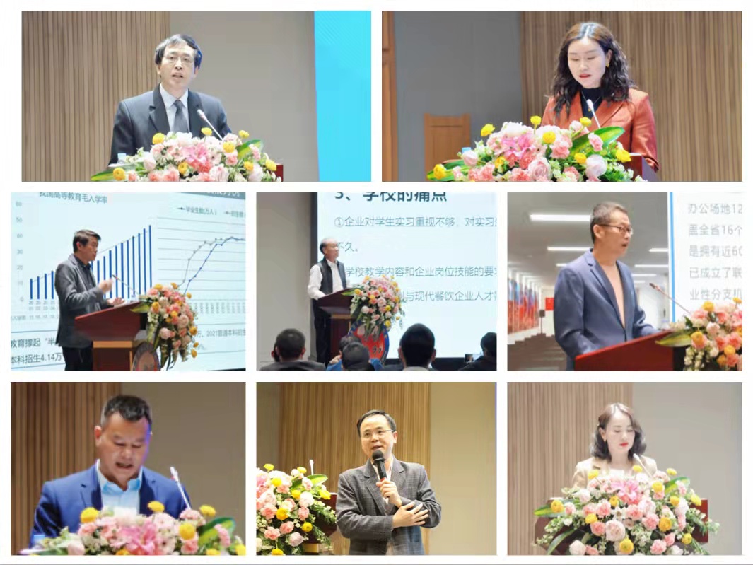 全国餐饮职业教育教学指导委员会副主任委员石长波教授致辞,对教专委的成立表示祝贺,希望教专委和产学研融合共同体担负起培养适应餐饮业发展需求专业性、知识性、应用性人才的光荣使命。产教融合共同体负责人、教专委主任开云kaiyun官方网站旅游学院院长田芙蓉介绍了专委会成立背景、宗旨、职责,并围绕职业教育自立自强提出的五项重点工作,介绍了产教融合共同体、教专委的工作思路及工作重点。