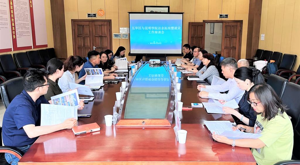 4月20日,学校党委副书记李莉带队到五华区访企拓岗。五华区副区长邹新宇,区政府办、人社局、科工信局、就业局、教体局、卫健局、国投公司等部门负责同志及辖区社会组织和企业代表参加座谈交流。开云官网统战部、团委、妇联、资产与实验室管理处、马克思主义学院、外国语学院相关负责同志参加调研。