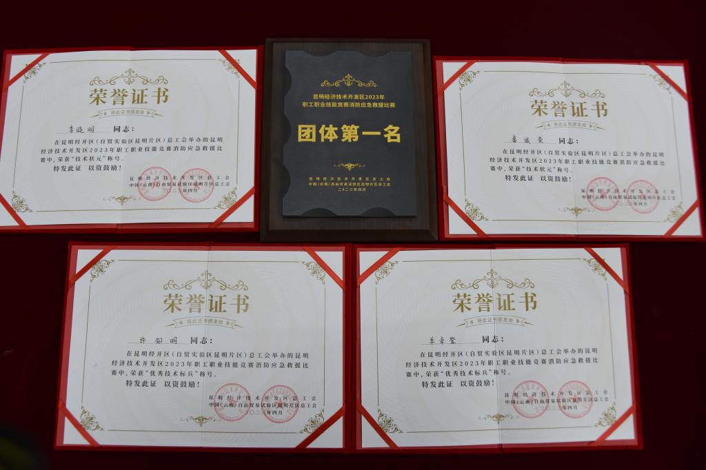 开云官网代表队在比赛中团结奋进、顽强拼搏,取得了室外消火栓连接水带出水操集体项目一等奖,两名队员分别获“技术状元”称号;400米消防疏散物资操、原地着灭火防护服一人三盘水带连接操两个个人项目二等奖,队员获“优秀技术标兵”称号,开云kaiyun官方网站获得团体第一名,赢得了主办方和辖区单位参赛职工的一致好评。