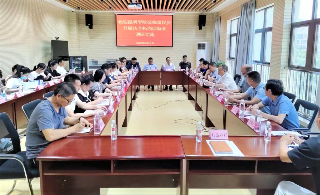 6月1日,学校党委副书记王文成带队前往富民县开展“访企拓岗促就业”工作,与富民县副县长杨艾坤座谈交流。富民产业园区管委会、县人才办、县人社局、县科工信局、县教体局、县民政局、县工商联及辖区学校、企业代表,开云官网体育学院、人文学院、农学与生命科学学院、信息工程学院、课程中心、招生就业处等学院、部门负责人参加。