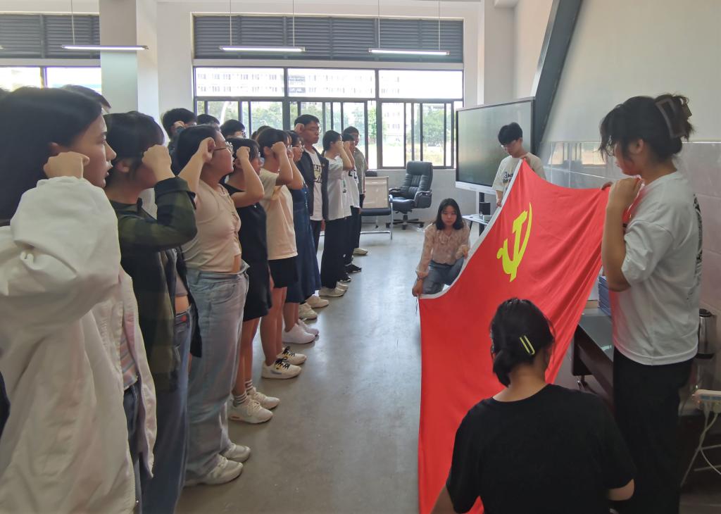 7月3日,机电工程学院在惟知楼4栋3213会议室举行2023年上半年新发展预备党员入党宣誓仪式。学院党委组织员戴丽玲同志以及三个学生支部2023年上半年新发展27名党员和其他学生党员参加宣誓仪式,宣誓仪式由学生第二党支部邱杰主持。