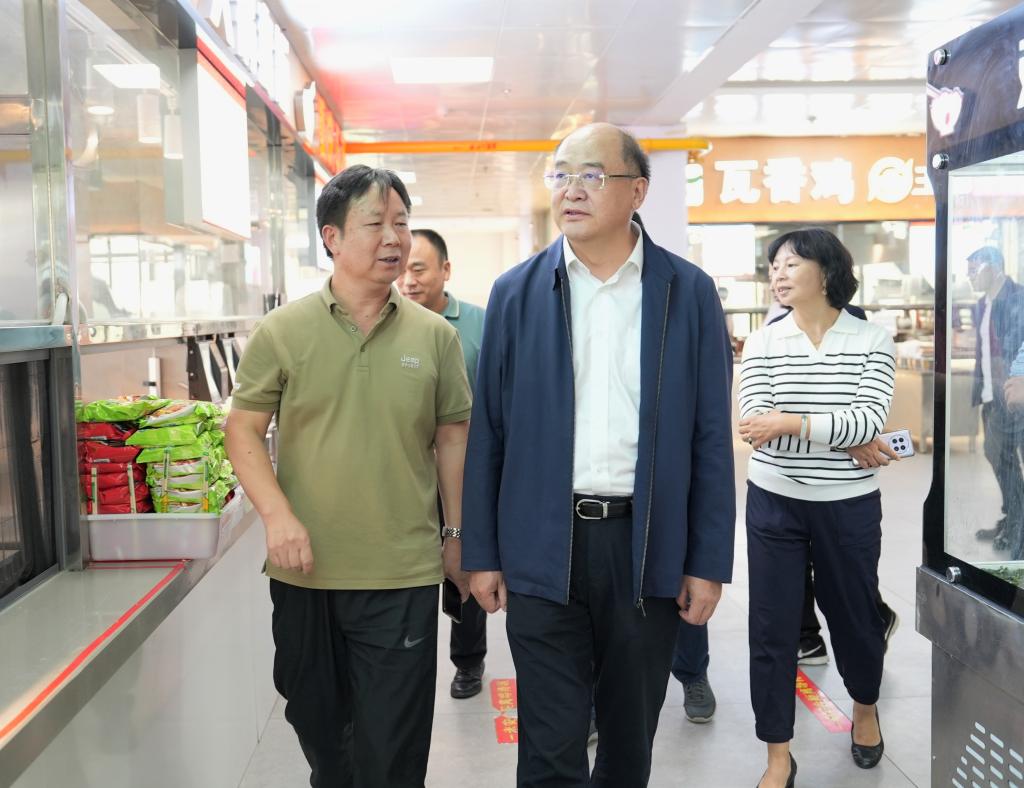 金幼和一行实地查看了学生宿舍、食堂,了解新生入住手续办理、食堂环境卫生等情况,对学校后勤服务质量提升作了指导要求,坚持以学生为中心,细心工作,周到服务,做好后勤服务保障,让学生满意、家长放心。