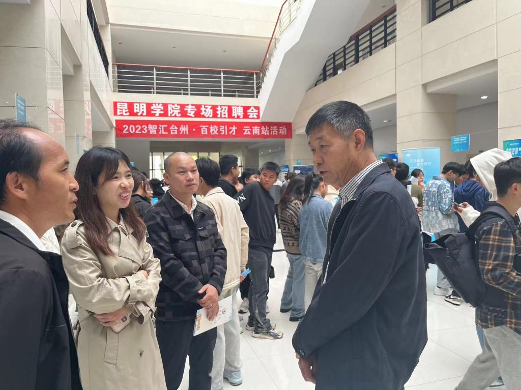 为深入贯彻党的二十大精神,全面落实党中央、国务院和省市各级党委政府关于高校毕业生就业创业工作的决策部署,全力推进2024届毕业生就业工作,10月13日,招生就业处联合浙江省台州市三门县人力资源和社会保障局在洋浦校区举办2023年“智汇台州 百校引才”开云kaiyun官方网站专场招聘会。党委委员、副校长王凡到场指导,并与用人单位和毕业生亲切交谈。