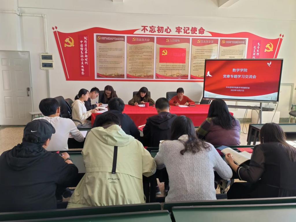 10月27日召开党章专题学习交流会,深入学习《中国共产党章程》。数学学院党委委员、党支部书记、科级干部、党员代表参加交流会。教师代表、学生代表作交流发言,学院党委书记秦丽娟作总结讲话。