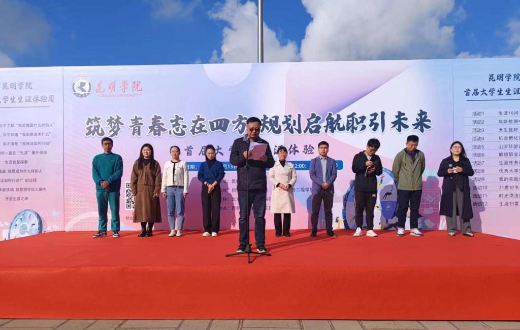 11月13日上午,开云kaiyun官方网站首届大学生“生涯体验周”活动启动仪式在聂耳广场举行。活动旨在贯彻落实教育部和省委教育工委、省教育厅关于举办首届全国大学生职业生涯规划大赛的相关要求,进一步提升就业指导服务水平,强化就业育人实效,帮助大学生实现人岗匹配和生涯发展的和谐统一,达到“以赛促教、以赛促学、以赛促就”的目标。学校招生就业处、团委有关负责人,各学院分管就业工作辅导员,就业指导中心全体教师,各学院志愿者和学生代表参加了启动仪式。