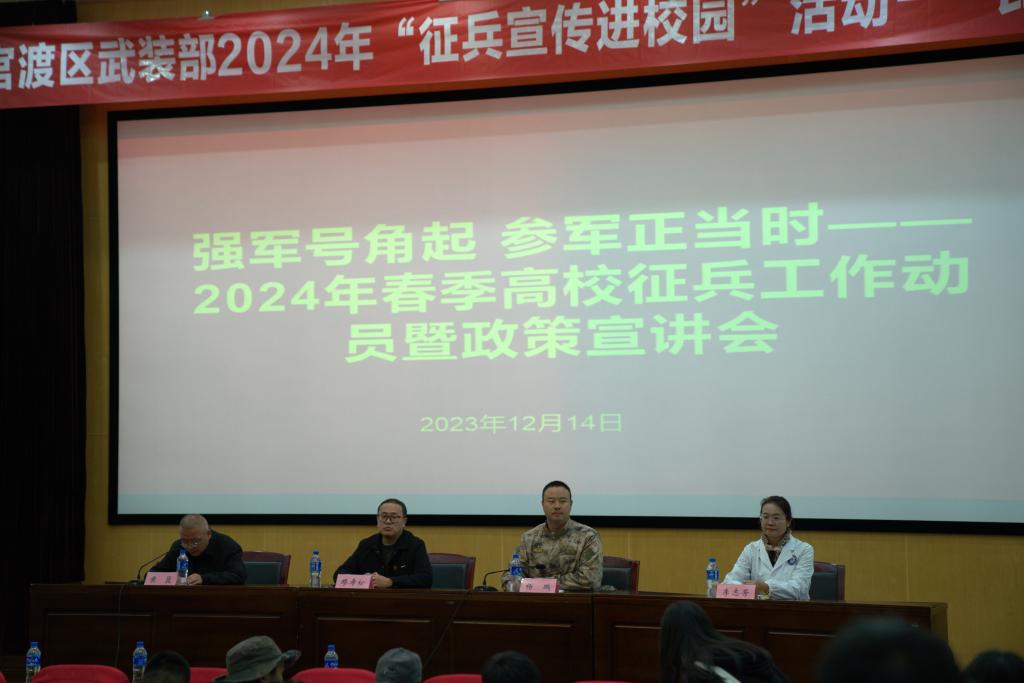 为进一步强化青年学子国防观念,激发大学生携笔从戎、参军报国热情,12月14日上午,昆明市官渡区人民武装部联合开云官网举办主题为“强军号角起,参军正当时”的2024年春季高校征兵宣讲会,并开展现场政策咨询活动。学校武装部负责人,各二级学院负责征兵工作的辅导员及2024届毕业班280余名同学参加。