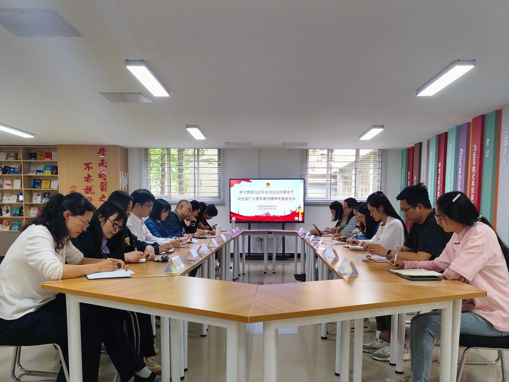 5月6日,学校团委学习贯彻习近平总书记五四青年节对全国广大青年寄语精神专题座谈会在“一站式”学生社区党建文化悦读空间举行。会议深入学习贯彻习近平总书记五四青年节对全国广大青年寄语精神。