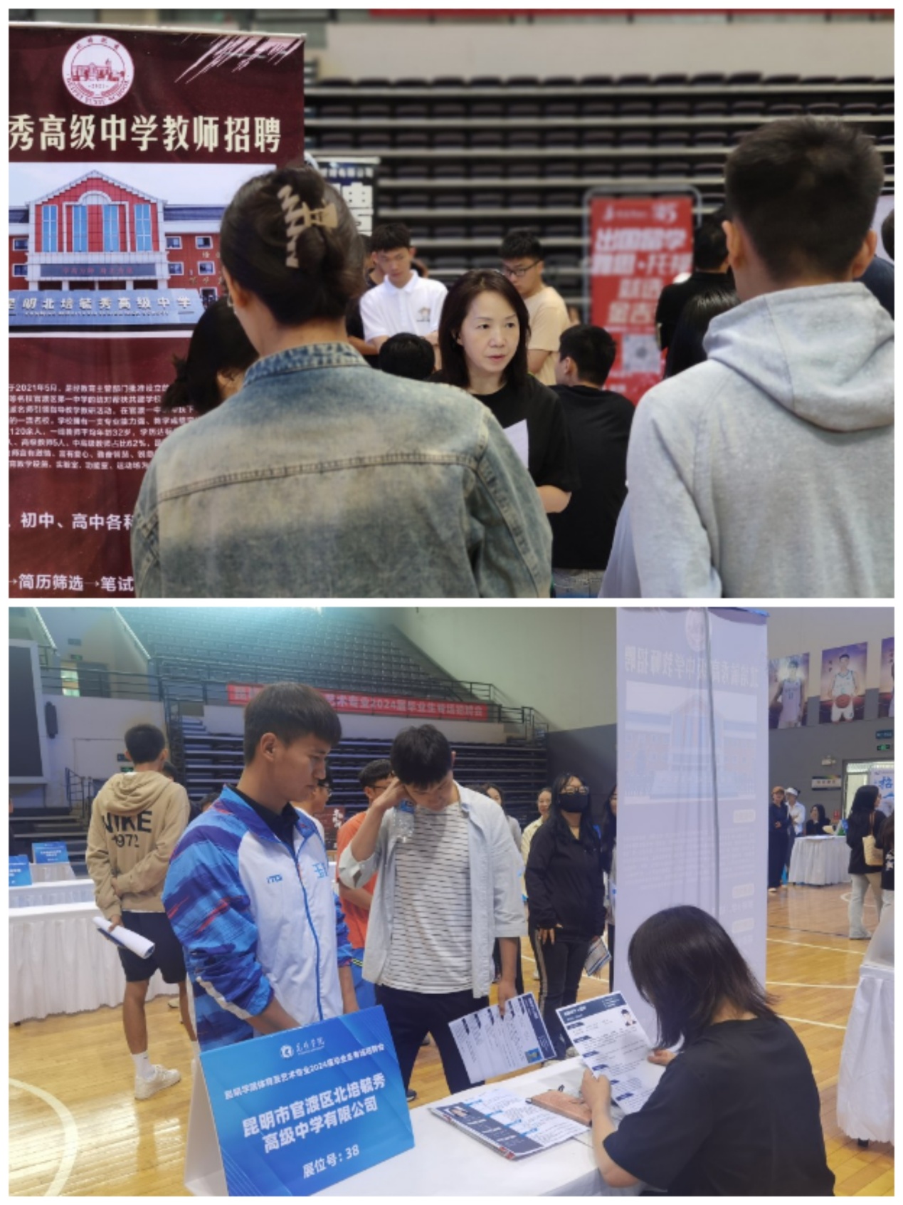 5月24日,开云kaiyun官方网站体育及艺术类专业2024届毕业生专场招聘会在学校综合体育馆举办。