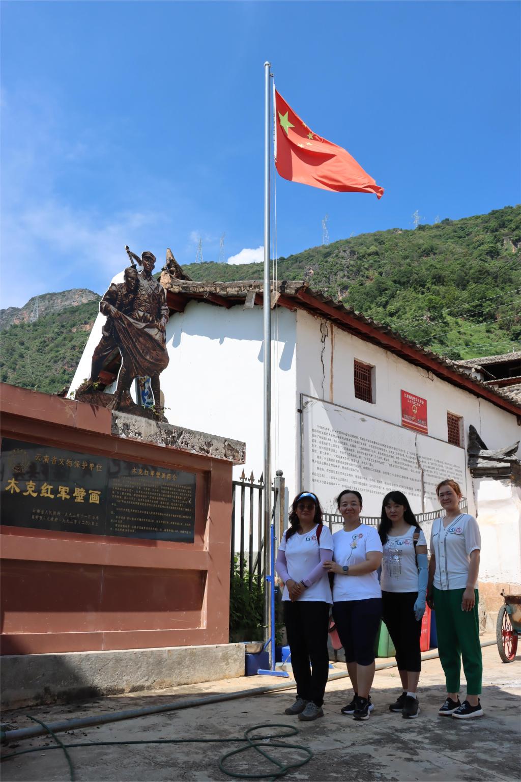 随后,“爱心妈妈”来到木克红军壁画和普渡河铁索桥畔的红军烈士纪念碑前开展学习革命精神的教育活动,感悟长征精神,激励自己不忘初心、牢记使命,更加坚定理想信念。
