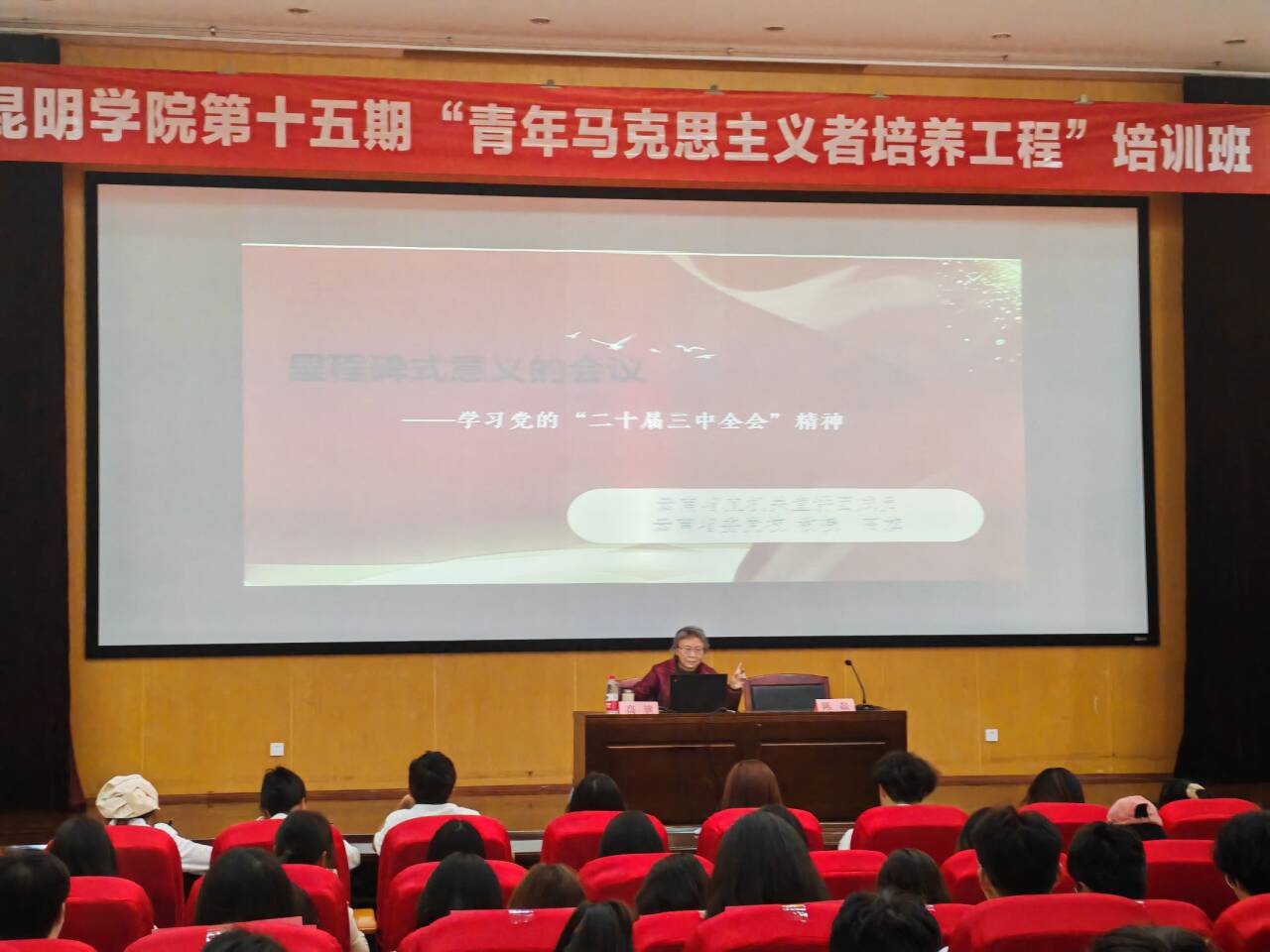 为深入学习贯彻习近平新时代中国特色社会主义思想,认真贯彻落实党的二十届三中全会精神,11月1日下午,学校团委第十五期“青年马克思主义者培养工程”培训班开班仪式暨理论学习第一课在惟行楼1501报告厅举行。
