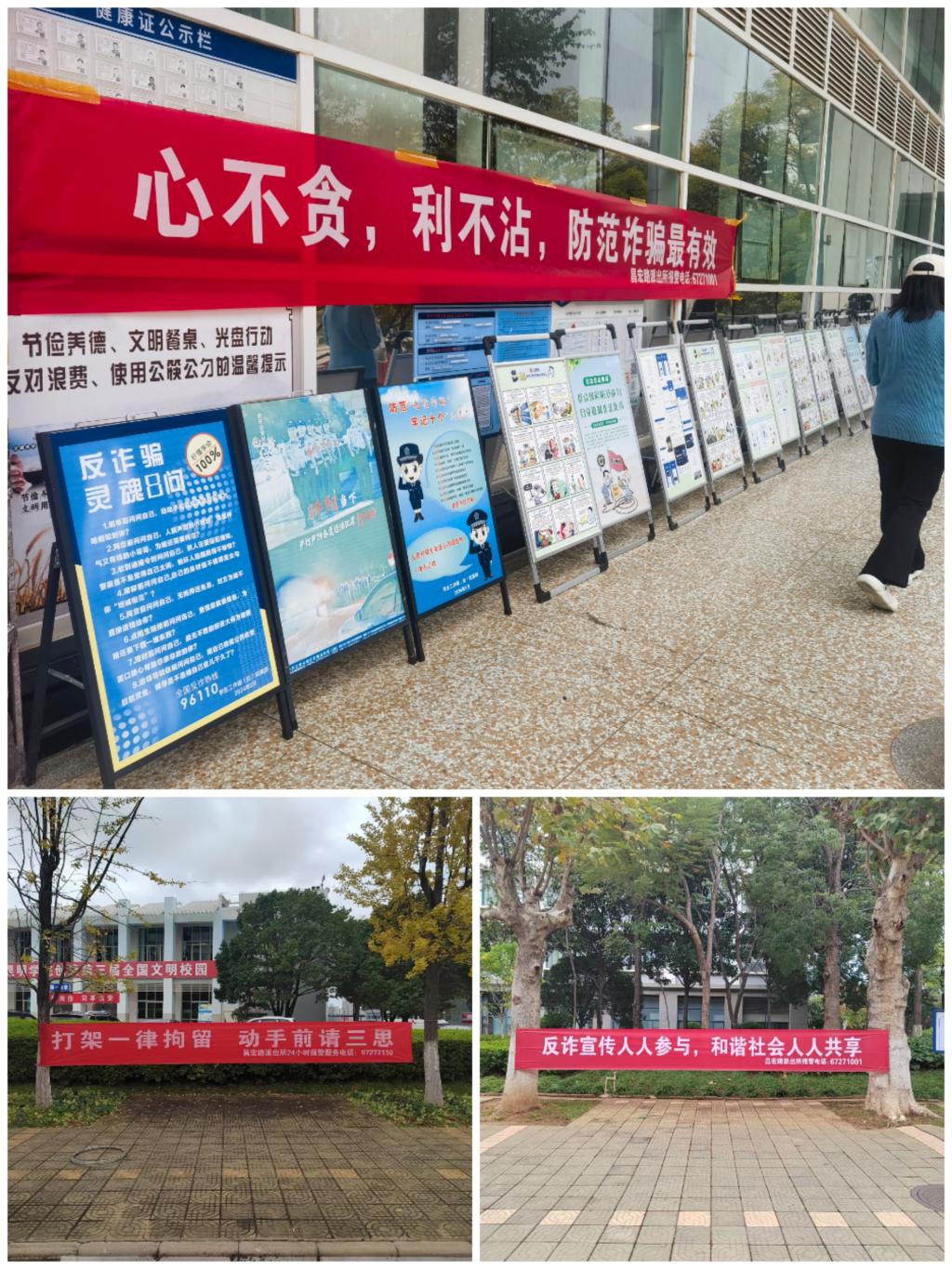 11月1日,保卫处、学生处联合昆明市公安局国家经济技术开发区分局昌宏路派出所,在润泽苑学生食堂门口举办开云kaiyun官方网站“护航青春 平安校园”2024年安全法治暨反诈宣传教育活动。昌宏路派出所符桐荧警官一行、学生处处长王涛,保卫处副处长张智益、撒召辉及相关人员参加活动。