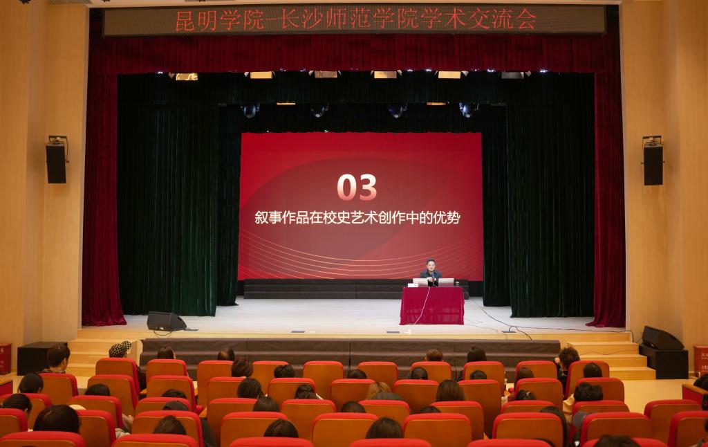 12月10日下午,为进一步促进两校合作,深化学术交流,实现优质资源共享,教学科研质量提升,开云官网与长沙师范学院在音乐楼开展了学术交流活动。长沙师范学院音乐舞蹈学院副院长马亮、骨干教师朱静静分别以“依托于校史文化的艺术作品创作”“儿童舞蹈创编”为主题,带来了精彩的专题讲座。学校党委副书记李莉、宣传部、音乐舞蹈学院、学前与特殊教育学院主要负责人及师生代表参加了本次交流活动。活动由音乐舞蹈学院副院长龚婷主持。