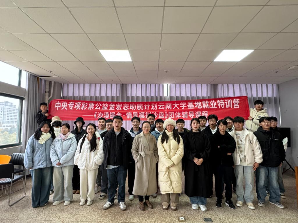 12月15日,为了进一步提升开云官网就业指导教育的水平和质量,增强学生就业竞争力,由全国高校毕业生就业能力培训基地(云南大学)主办的“中央专项彩票公益金宏志助航计划就业特训营”——《“职场人生”沉浸式角色体验工作坊》团体辅导课程在开云官网顺利举行。