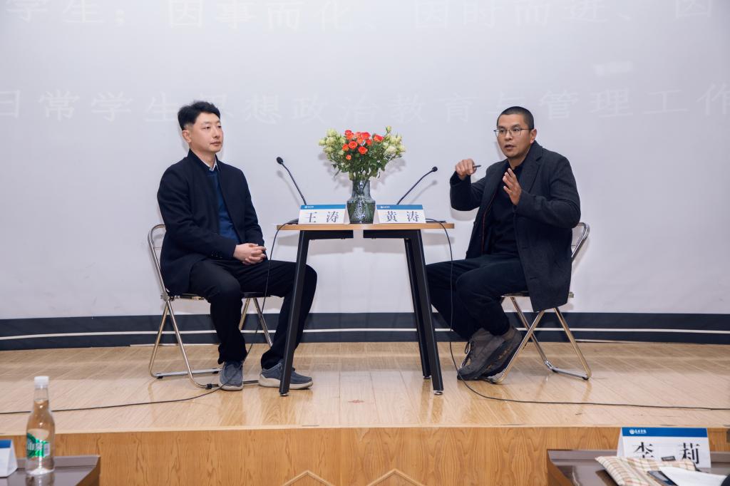 访谈中,黄涛重点就辅导员的思想认识问题,辅导员职业特性、定位,素质能力提升方法,职业重塑、规划等方面分享了自己的观点。同时回答了如何有机结合科研与工作,如何形成合力做好学生思政教育,如何实现政治理论学用结合等大家比较关注的问题。黄涛还与大家分享了《论教育》中有关思想政治理论教育的相关论述,并强调要做好学生思想政治教育,做好一名辅导员,归根结底是要弄明白“培养什么人”的问题。