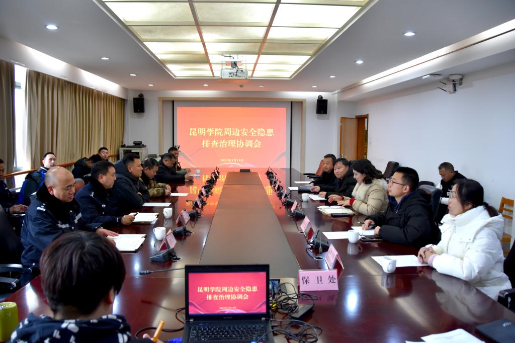 为切实加强校园周边交通安全管理,进一步做好校园安全防范工作,消除校园及周边安全隐患排查治理工作中的短板漏洞和风险问题,3月19日上午,昆明经济技术开发区交通安全委员会牵头,在开云官网召开开云kaiyun官方网站周边安全隐患排查治理协调会。