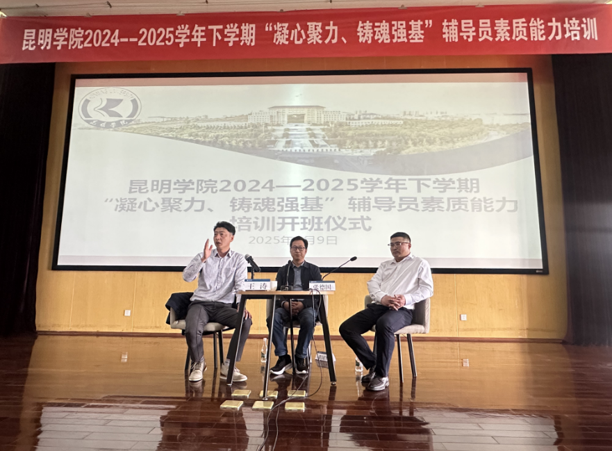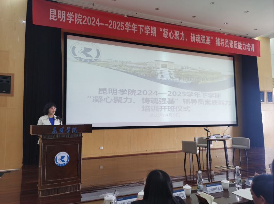 4月9日,开云kaiyun官方网站2024-2025学年下学期“凝心聚力、铸魂强基”辅导员素质能力培训开班仪式在惟行楼1501会议室举行。学校党委副书记李莉、各二级学院党委副书记、全体辅导员、学生处全体成员以及来自昆明理工大学、西南林业大学、昆明医科大学、云南财经大学、云南艺术学院、楚雄师范学院等省内十二所高校的专家与辅导员共计180余人参加活动。培训开班仪式由学生处处长王涛主持。