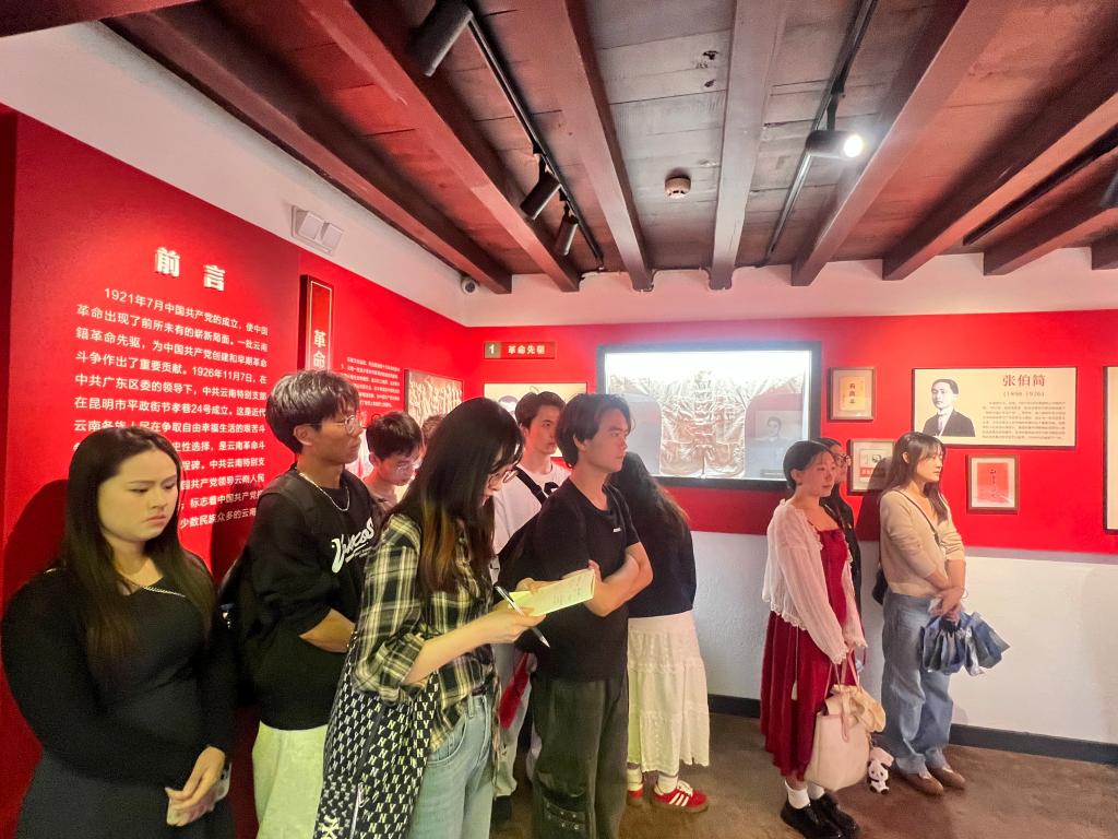 活动首站,实践团抵达中共云南地下党建党旧址。馆内陈列的珍贵文物、详实史料及历史图片,生动展现了早期共产党人在云南积极传播马克思主义、唤醒民众意识的奋斗图景。随后,实践团前往聂耳故居开展研学。在聂耳故居内,一件件承载岁月记忆的旧物、一幅幅记录成长点滴的照片,串联起聂耳从母校求学时期对音乐的执着追求,到投身革命后以音乐为武器,创作出《义勇军进行曲》等经典作品的奋斗人生。