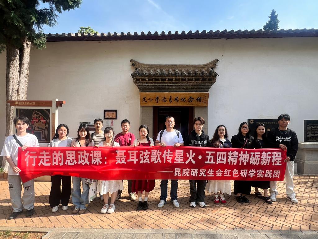 此次红色研学活动,是一堂极具教育意义的 “行走的思政课”。中共云南地下党建党旧址与聂耳故居所蕴含的历史记忆和革命精神,为青年学子照亮前行方向。参与活动的研究生会成员纷纷表示,通过实地研学,对五四精神内涵有了更深刻的理解,也从校友聂耳的音乐创作与革命历程中汲取到强大的精神力量。未来,研究生会将以红色研学为抓手,构建“研学教育+志愿赋能”双线融合实践模式,深挖校友聂耳的精神内涵,推动红色文化育人工作走深走实,助力昆院青年在红色文化浸润中成长成才,让红色基因在新时代绽放新光彩。