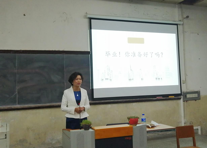 她希望同学们从她的经历中感悟到拥有目标,脚踏实地,学会自信,咬牙坚持对实现自身价值的重要性。随后,对就业趋势以及就业方向为同学们进行了客观仔细的分析。马春花主任还就职场礼仪给同学们展开了一场生动有趣的讲解,会场气氛推到了高潮,同学们积极踊跃参与到互动中,并且表现得大方得体。
