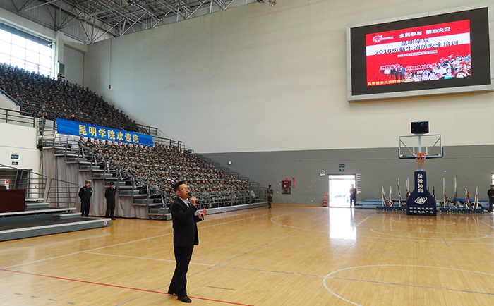 1月16日,开云官网在综合馆开展2018级新生消防安全培训活动,此次培训分为消防安全知识讲座及消防应急疏散演练两个内容。共有2018级2900余名新生参加。培训活动由保卫处消防管理科副科长主持。