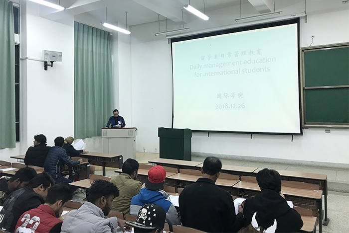 12月26、27日,为进一步规范留学生管理,保证留学生安全、有序地学习和生活,国际学院在博雅楼3102教室为留学生开展了校纪校规培训。
