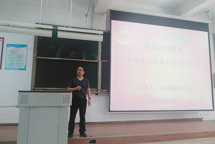 乔永锋副书记做第三专题的入学教育。他结合最近发生的时事,向学生讲述成长、成人、成才,希望所有同学来到新的起点,能重新认识自己,努力提高自己,多读书、多学习,积极参加活动,丰富自己的课余生活。乔副书记还向大家讲解了大学生入党的基本知识和入党程序,鼓励同学们积极向党组织提交入党申请书。